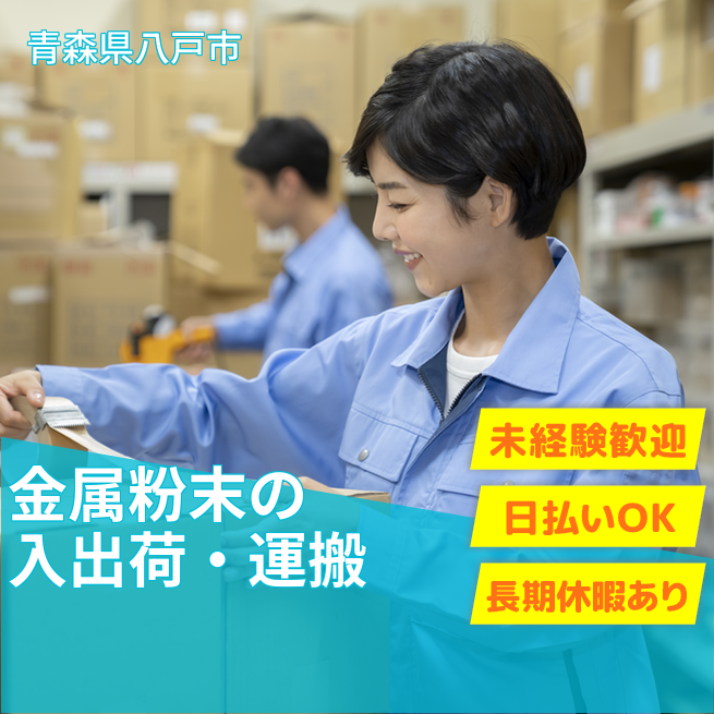 給与詳細 月収例 224,700円 時給例 1,200円 勤務地 青森県八戸市 仕事内容 【粉末原料の入出荷・運搬作業】