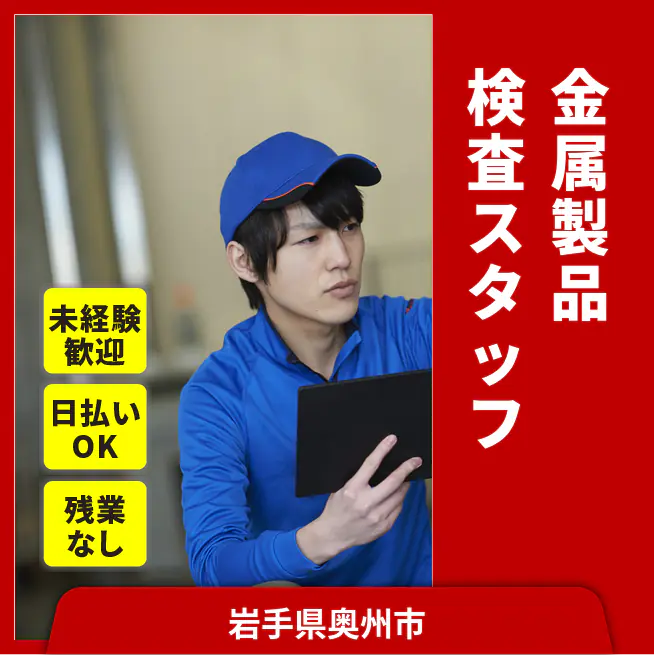 給与詳細 月収例 184,000円 時給例 1,150円 勤務地 岩手県奥州市 仕事内容 <板金製品の検査スタッフ> 金属板金部品の品質検査を担当。
