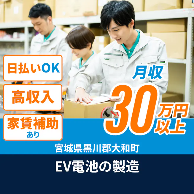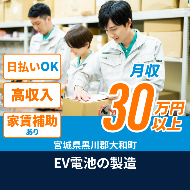 給与詳細 月収例 301,640円 日給例 11,600円 勤務地 宮城県黒川郡大和町 仕事内容 【概要】