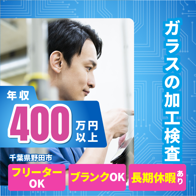 住宅用ペア/強化ガラスの加工・仕上・検査・出荷。未経験でも2~3週で習得可。