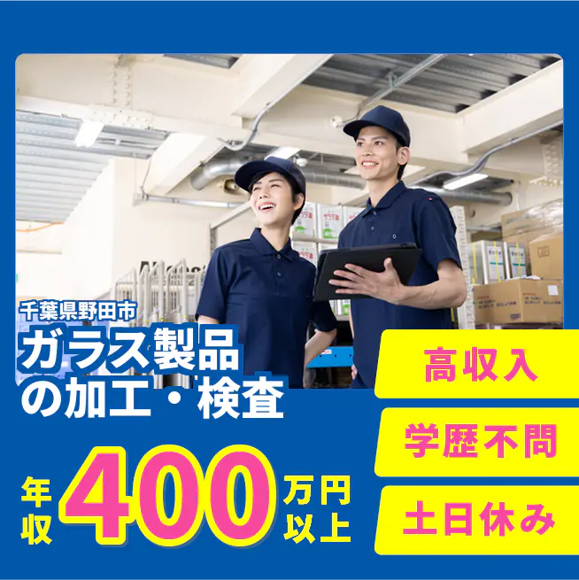 給与詳細 月収例 301,125円 日給例 12,000円 勤務地 千葉県野田市 仕事内容 【窓ガラスの加工作業】