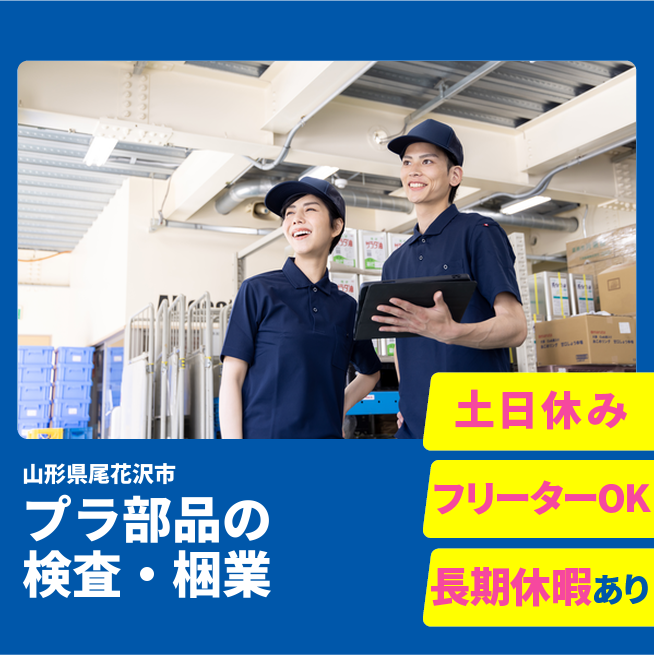 給与詳細 月収例 235,788円 時給例 1,150円 勤務地 山形県尾花沢市 仕事内容 【プラスチック部品の検査・梱包作業】
