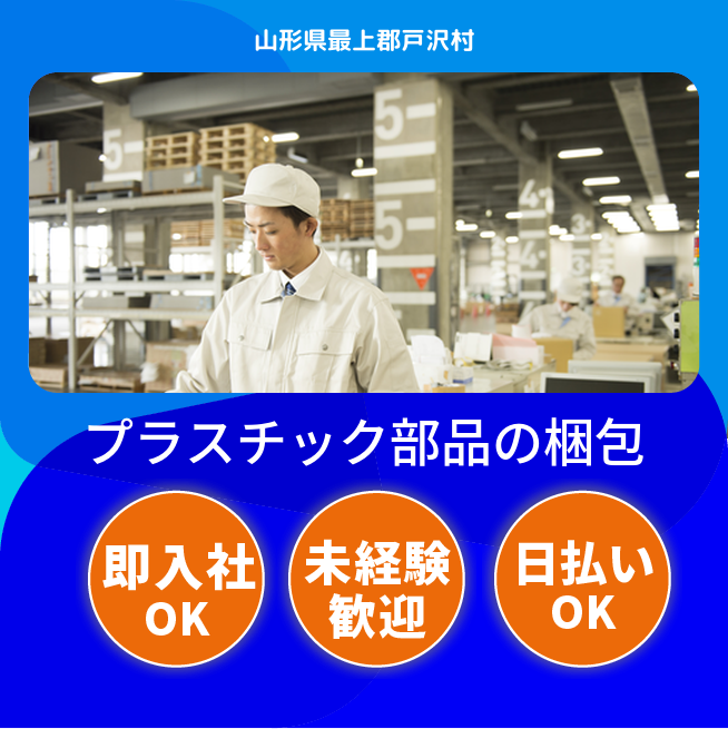 給与詳細 月収例 226,294円 時給例 1,150円 勤務地 山形県最上郡戸沢村 仕事内容 【プラスチック部品の仕上げ・梱包作業】
