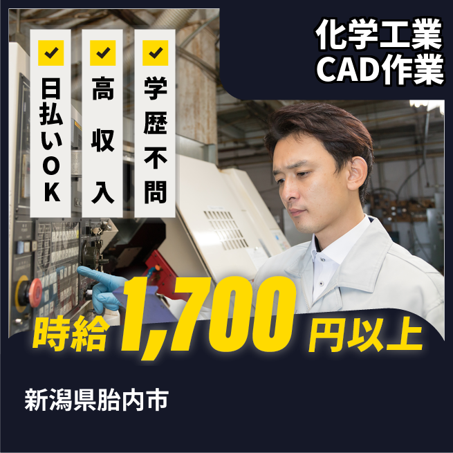 給与詳細 月収例 263,500円 時給例 1,700円 勤務地 新潟県胎内市 仕事内容 【業務内容】