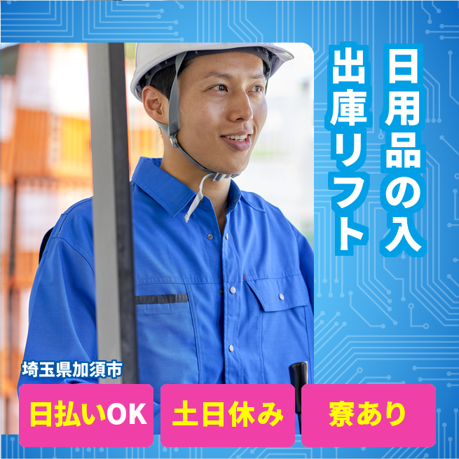 量販店向け日用品の入出庫(リーチ)、短時間~フルまで柔軟シフトOKの物流センター業務です。