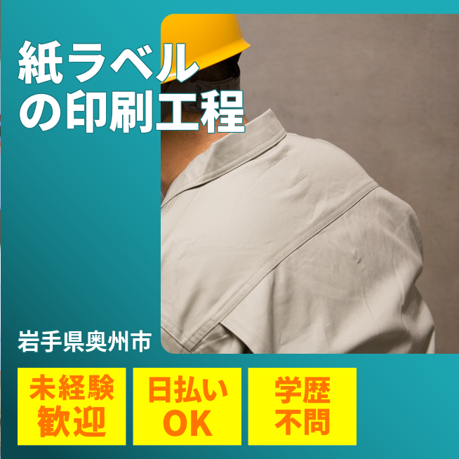 給与詳細 月収例 237,242円 時給例 1,150円 勤務地 岩手県奥州市 仕事内容 【紙ラベル印刷・加工】