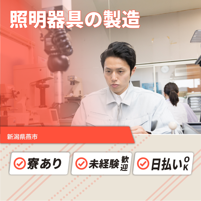 給与詳細 月収例 278,958円 日給例 10,400円 勤務地 新潟県燕市 仕事内容 【概要】