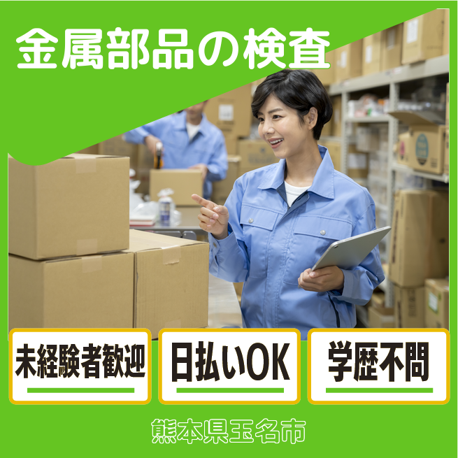 給与詳細 月収例 185,938円 時給例 1,050円 勤務地 熊本県玉名市 仕事内容 【手のひらサイズ金属部品の検査スタッフ】