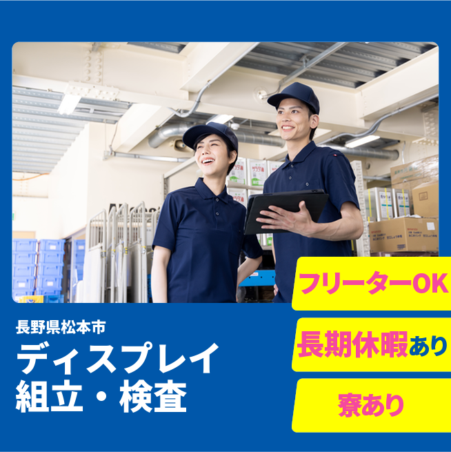 給与詳細 月収例 252,000円 時給例 1,230円 勤務地 長野県松本市 仕事内容 【業務内容】