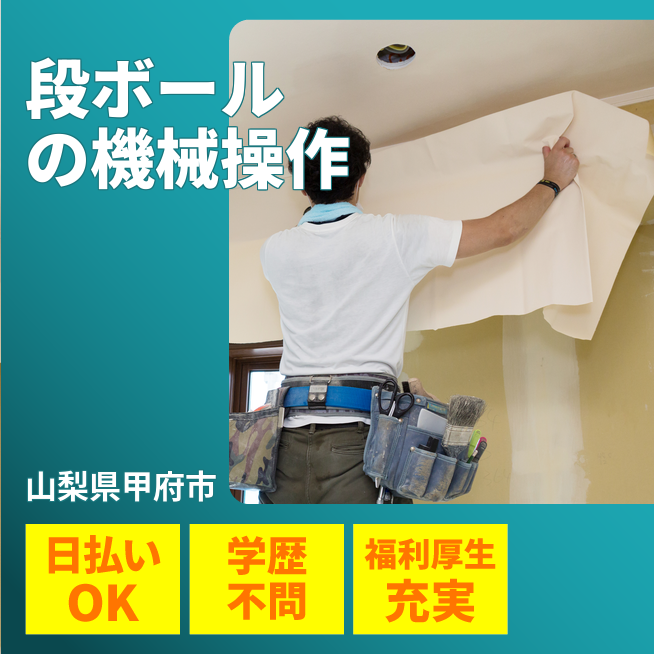 段ボール工場で、機械オペレーション補助(日勤)を担当。土日祝休み。