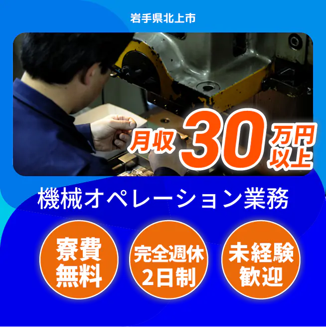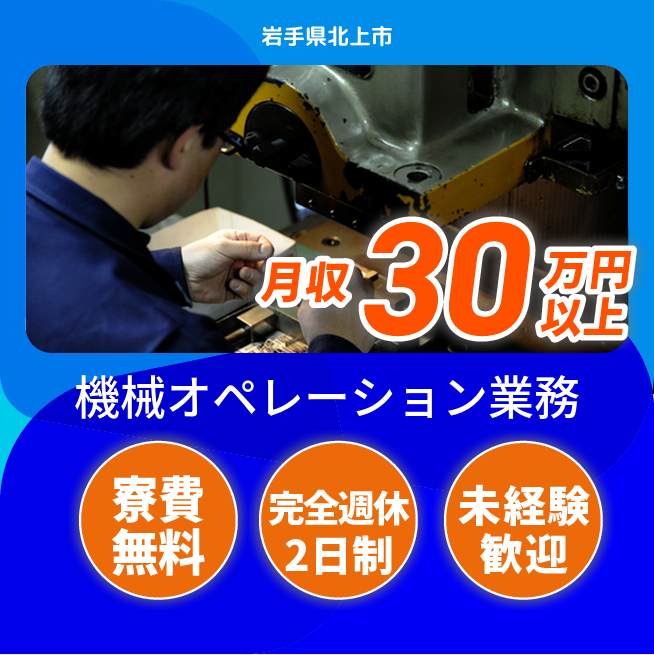 給与詳細 月収例 310,000円 日給例 12,400円 勤務地 岩手県北上市 仕事内容 【業務内容】