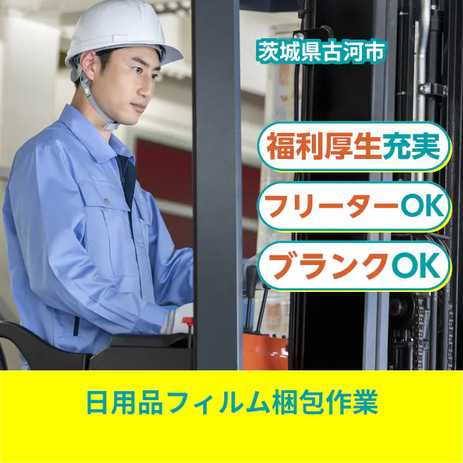 時給例:1500円 交通費 支給あり 応募の流れ 本ページ内<応募する>ボタンより、必要項目をご入力の上、ご応募ください。 勤務地 【勤務地】茨城県古河市丘里 勤務時間 【勤務地】6:50~15:00/14:50~23:00/22:50~翌7:00(交替制) 必須資格 経験不問※フォークリフト・玉掛免許あれば尚可 福利厚生 ★社会保険完備、有給休暇制度有、通勤交通費支給、ワンルーム寮完備、赴任旅費支給、車通勤可、送迎バス有、制服貸与 ※勤務先による