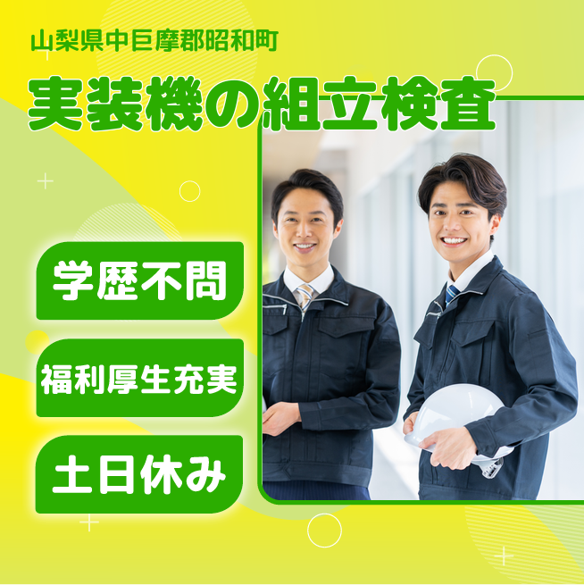 給与詳細 月収例 246,882円 日給例 10,500円 勤務地 山梨県中巨摩郡昭和町 仕事内容 生産設備(スマホやPCの基板を製造する実装機)の本体組立業務や完成した製品の検査、本体に組み付けるユニットの加工等のいずれかになります。