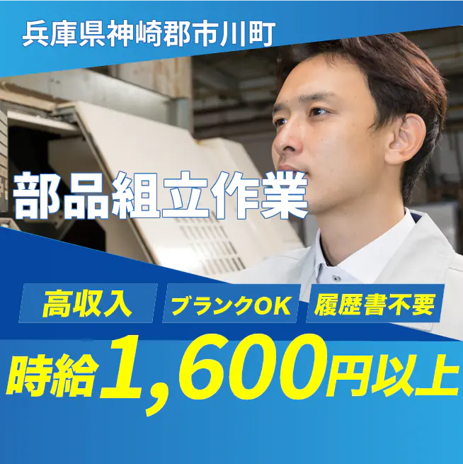 給与詳細 月収例 298,800円 時給例 1,600円 勤務地 兵庫県神崎郡市川町 仕事内容 【業務内容】