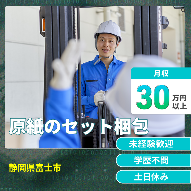 給与詳細 月収例 304,825円 日給例 10,960円 勤務地 静岡県富士市 仕事内容 フォークリフトを使い、原紙を機械にセットします。