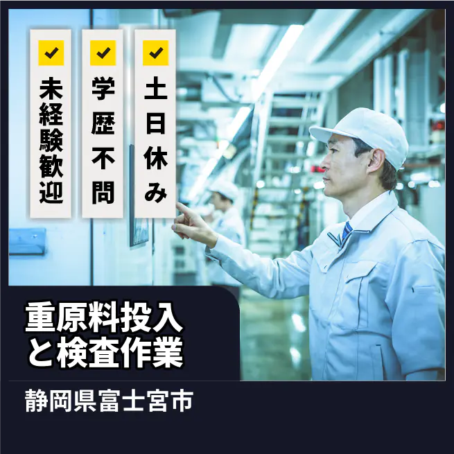給与詳細 月収例 256,000円 時給例 1,600円 勤務地 静岡県富士宮市 仕事内容 【業務内容】