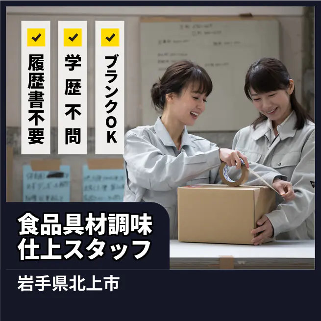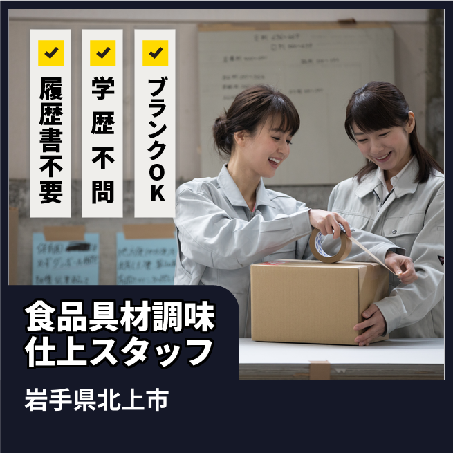 給与詳細 月収例 160,000円 時給例 1,000円 勤務地 岩手県北上市 仕事内容 下処理された具材の仕上げ作業(具材同士を混ぜ合わせたり、下味をつける)