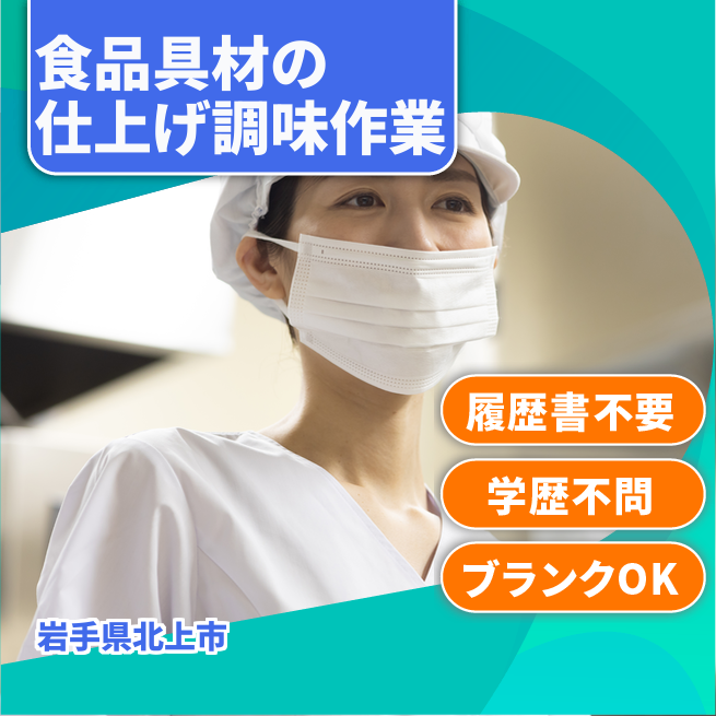 給与詳細 月収例 160,000円 時給例 1,000円 勤務地 岩手県北上市 仕事内容 下処理された具材の仕上げ作業(具材同士を混ぜ合わせたり、下味をつける)