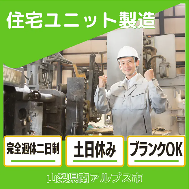 給与詳細 月収例 216,000円 日給例 10,800円 勤務地 山梨県南アルプス市 仕事内容 木材へのビス打ち等住宅ユニット製造のお仕事