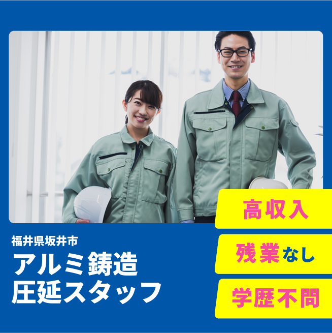 給与詳細 月収例 232,000円 日給例 11,600円 勤務地 福井県坂井市 仕事内容 アルミニウムの鋳造( 圧延工程 )