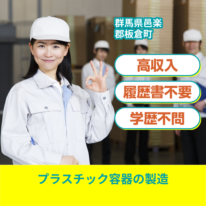 給与詳細 月収例 240,000円 日給例 12,000円 勤務地 群馬県邑楽郡板倉町 仕事内容 医療分野や食品分野等で使われるプラスチック容器製造