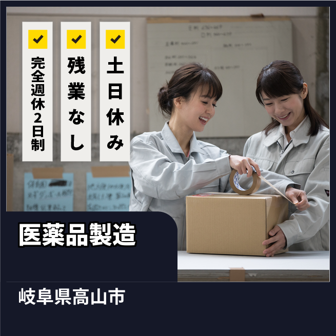給与詳細 月収例 240,000円 日給例 12,000円 勤務地 岐阜県高山市 仕事内容 医薬品製造