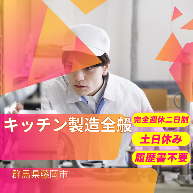 給与詳細 月収例 216,000円 日給例 10,800円 勤務地 群馬県藤岡市 仕事内容 システムキッチンの製造、インパクトドライバーを用いた組立、目視検査、ピッキング、マシンオペレーター等の業務