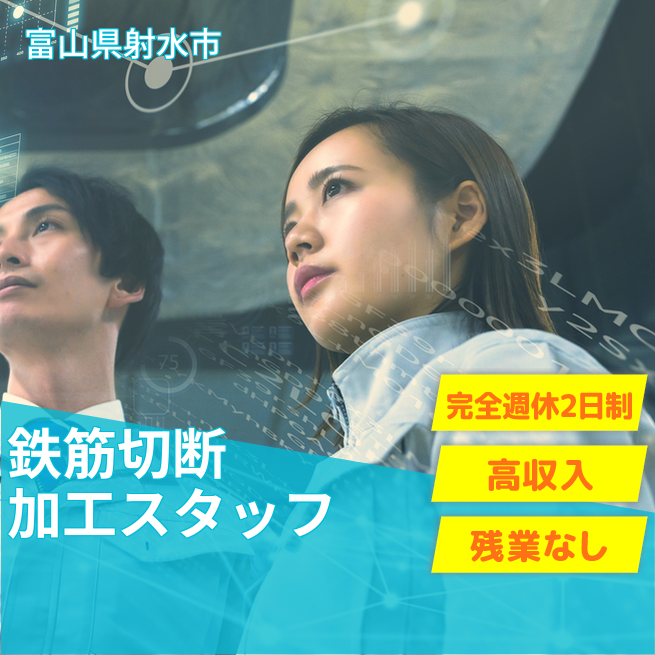 給与詳細 月収例 232,000円 日給例 11,600円 勤務地 富山県射水市 仕事内容 鉄筋異形棒鋼の切断および先端部分の加工業務、製品の移動業務