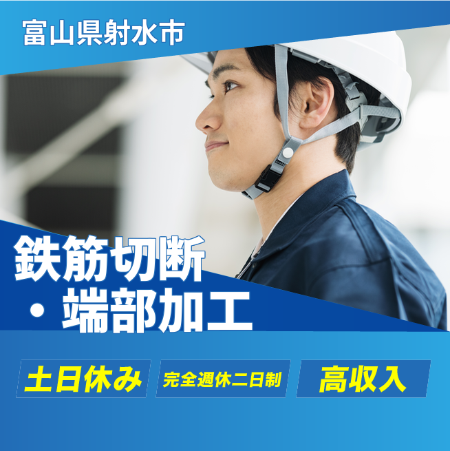 給与詳細 月収例 232,000円 日給例 11,600円 勤務地 富山県射水市 仕事内容 鉄筋異形棒鋼の切断および先端部分の加工業務、製品の移動業務