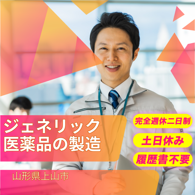 給与詳細 月収例 212,800円 日給例 10,640円 勤務地 山形県上山市 仕事内容 ジェネリック医薬品の製造