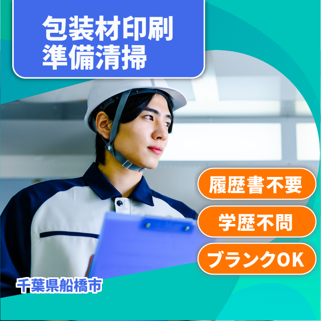 給与詳細 月収例 208,000円 日給例 10,400円 勤務地 千葉県船橋市 仕事内容 包装材の印刷工程にて機械部品の準備や片付け、清掃や管理等