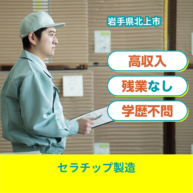 給与詳細 月収例 248,000円 日給例 12,400円 勤務地 岩手県北上市 仕事内容 セラミックコンデンサチップの製造