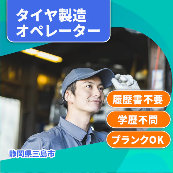 給与詳細 月収例 192,000円 時給例 1,200円 勤務地 静岡県三島市 仕事内容 タイヤの製造