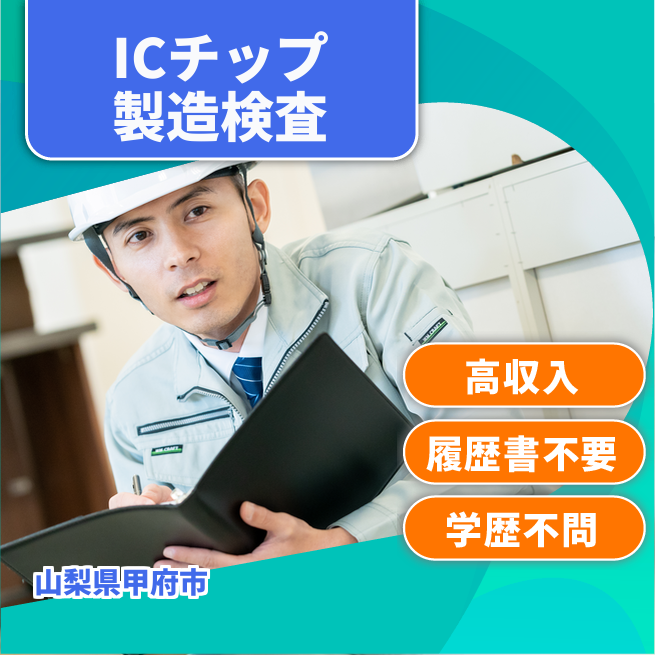 給与詳細 月収例 224,000円 日給例 11,200円 勤務地 山梨県甲府市 仕事内容 ICチップの製造・検査
