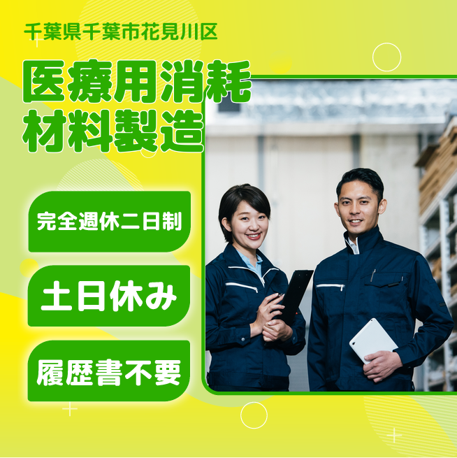 給与詳細 月収例 209,600円 日給例 10,480円 勤務地 千葉県千葉市花見川区 仕事内容 医療機器、医療用消耗材料製造:機械OP・材料準備等
