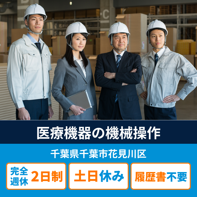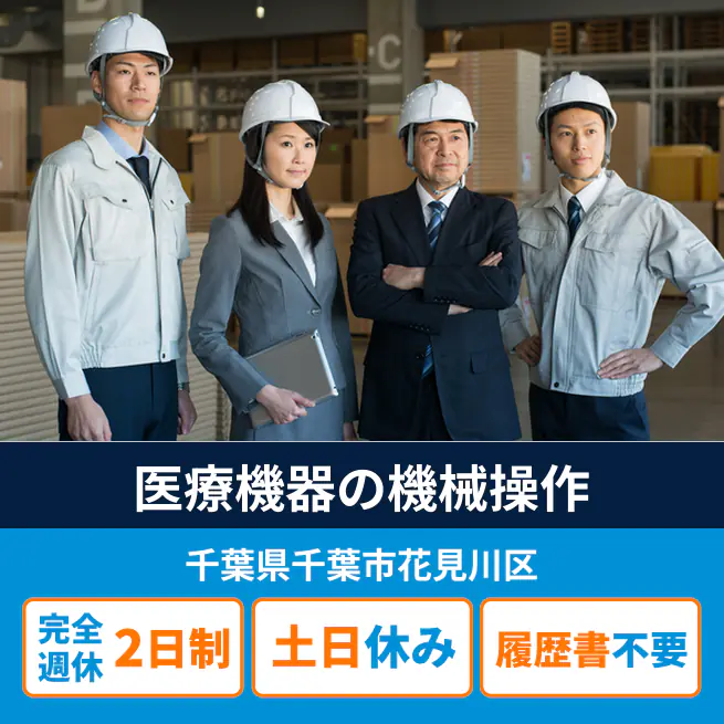 給与詳細 月収例 209,600円 日給例 10,480円 勤務地 千葉県千葉市花見川区 仕事内容 医療機器、医療用消耗材料製造:機械OP・材料準備等