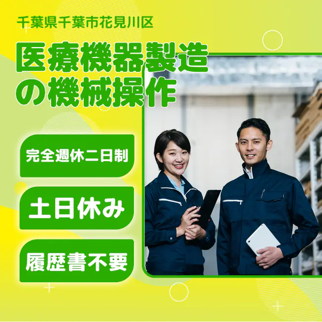 時給例:1310円 応募の流れ 本ページ内<応募する>ボタンより、必要項目をご入力の上、ご応募ください。 勤務地 【勤務地】千葉県千葉市花見川区- 勤務時間 【勤務地】8:30~17:30 福利厚生 残業手当 公開日 2025年01月01日 部屋タイプ 単身者向けの1Rやカップル・家族向け2Kのルーム、ペットOKなど幅広いニーズに合わせてご用意しております! 家具・備品 テレビ・冷蔵庫・エアコンなどの家電を完備!すぐに新生活が始められます!※寮による その他 カップル・家族寮:あり