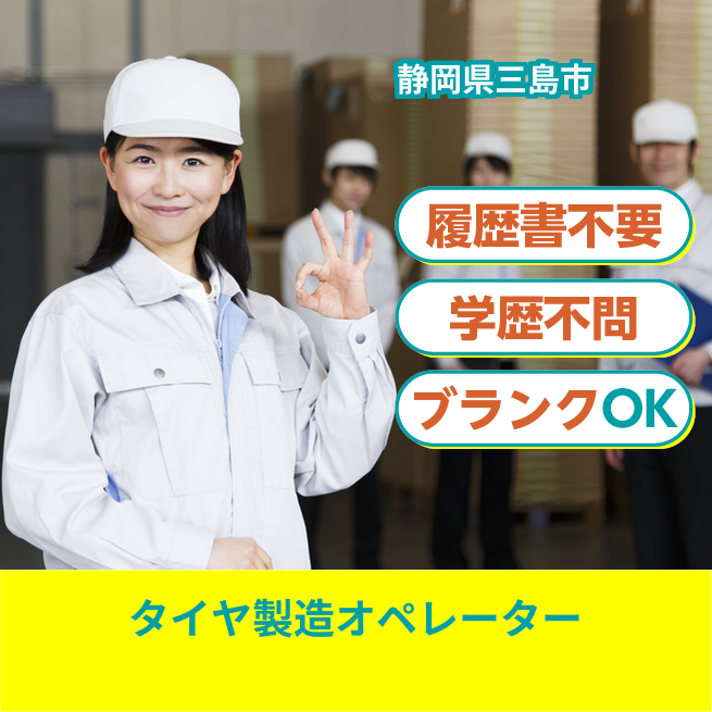 給与詳細 月収例 192,000円 時給例 1,200円 勤務地 静岡県三島市 仕事内容 タイヤの製造