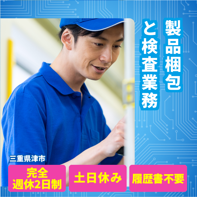 給与詳細 月収例 212,800円 日給例 10,640円 勤務地 三重県津市 仕事内容 製品梱包、目視検査、梱包済みダンボールのパレット積み