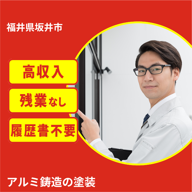 給与詳細 月収例 232,000円 日給例 11,600円 勤務地 福井県坂井市 仕事内容 アルミニウムの鋳造( コーティング )