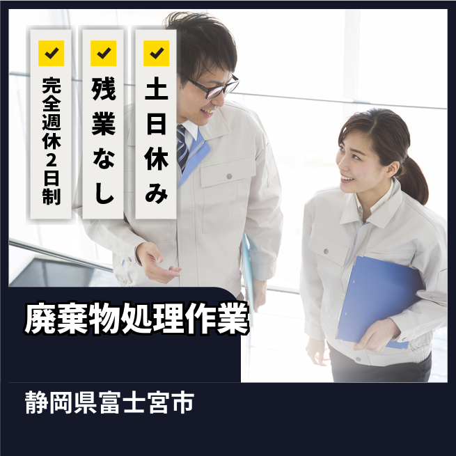 給与詳細 月収例 216,000円 日給例 10,800円 勤務地 静岡県富士宮市 仕事内容 廃棄物処理に関する業務を行います。