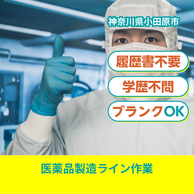 給与詳細 月収例 232,000円 日給例 11,600円 勤務地 神奈川県小田原市 仕事内容 医薬品の製造