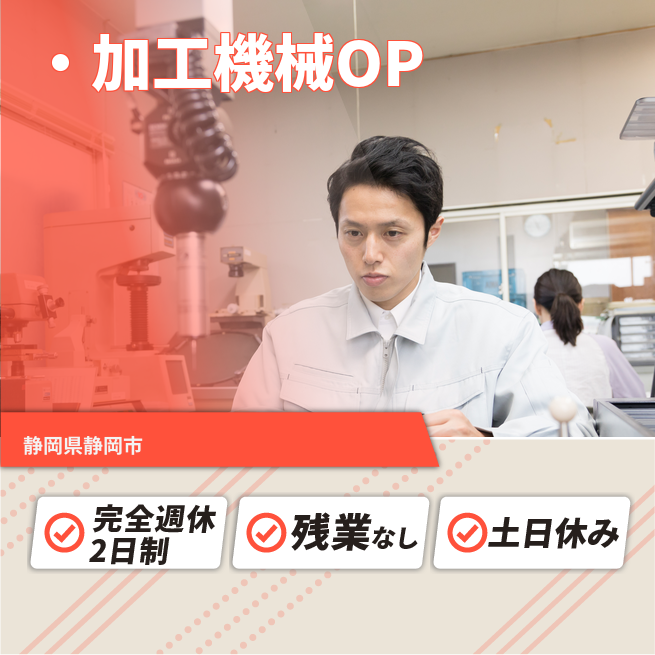 給与詳細 月収例 240,000円 日給例 12,000円 勤務地 静岡県静岡市葵区 仕事内容 ・加工機械OP