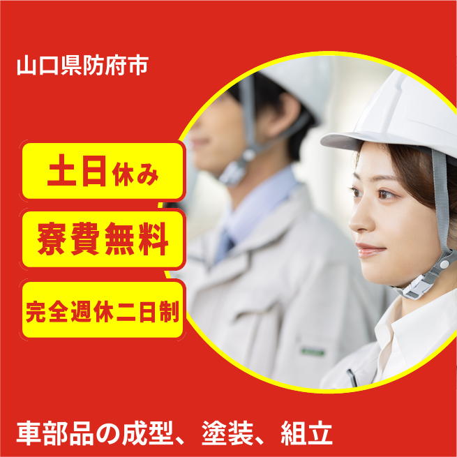 給与詳細 月収例 224,000円 日給例 11,200円 勤務地 山口県防府市 仕事内容 車部品の成型、塗装、組立