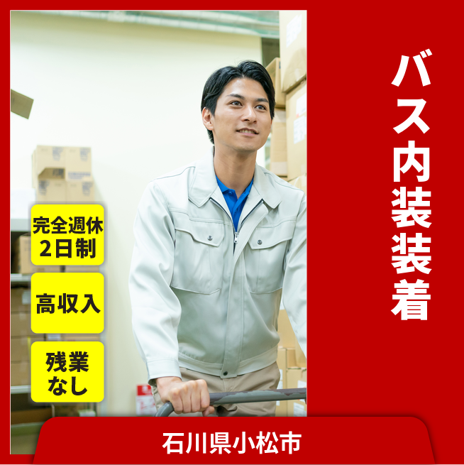 給与詳細 月収例 232,000円 日給例 11,600円 勤務地 石川県小松市 仕事内容 大型・中型バスの内張りの取り付け、艤装品の取り付けの作業及び、付随する作業。