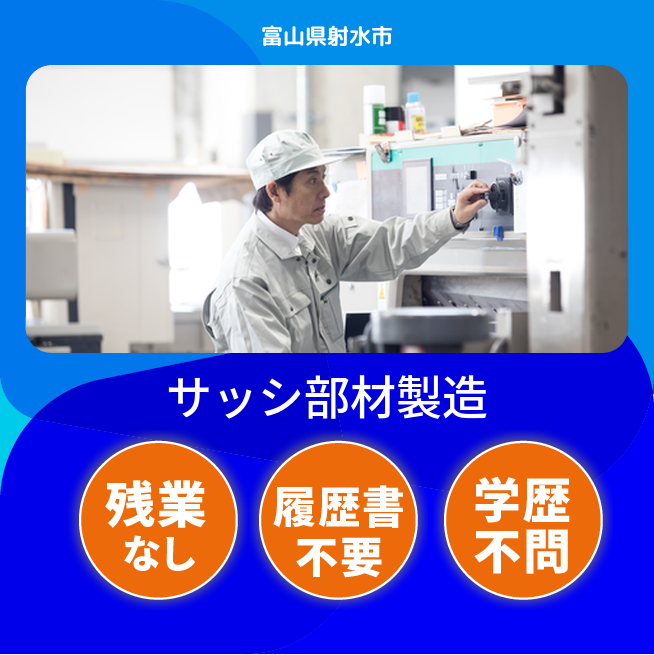 入社祝い金あり 【入社祝い金】 入社祝い金あり 応募の流れ 本ページ内<応募する>ボタンより、必要項目をご入力の上、ご応募ください。 勤務地 【勤務地】富山県射水市- 勤務時間 【勤務地】8:00~17:00(65分)