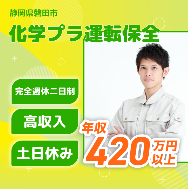 給与詳細 月収例 320,000円 時給例 2,000円 勤務地 静岡県磐田市 仕事内容 有機・無機材料を製造する化学プラントにてメンテナンス、機械操作