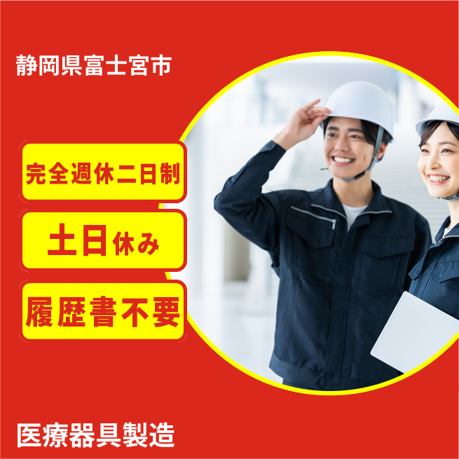 給与詳細 月収例 250,000円 日給例 12,500円 勤務地 静岡県富士宮市 仕事内容 医療器具製造現場での班長候補、現場フォローや生産進捗確認