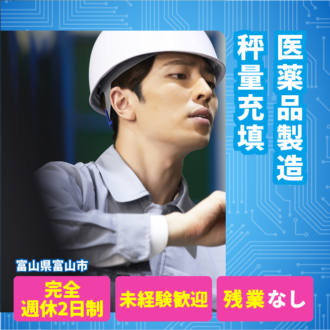 給与詳細 月収例 200,000円 日給例 10,000円 勤務地 富山県富山市 仕事内容 医薬品を製造している工場でのお仕事です