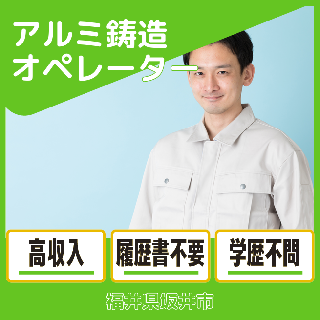 給与詳細 月収例 232,000円 日給例 11,600円 勤務地 福井県坂井市 仕事内容 アルミニウムの鋳造